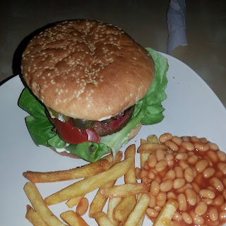 One of the things we enjoy at the weekend is to make a delicious burger. Burgers from the market, buns from the local bakery and as summer comes round veggies from our garden or allotment. All served with chips and baked beans.